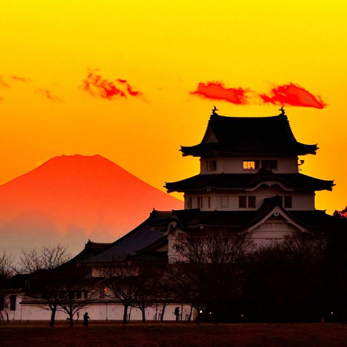 Sekiyado Castle with a view of Mount Fuji